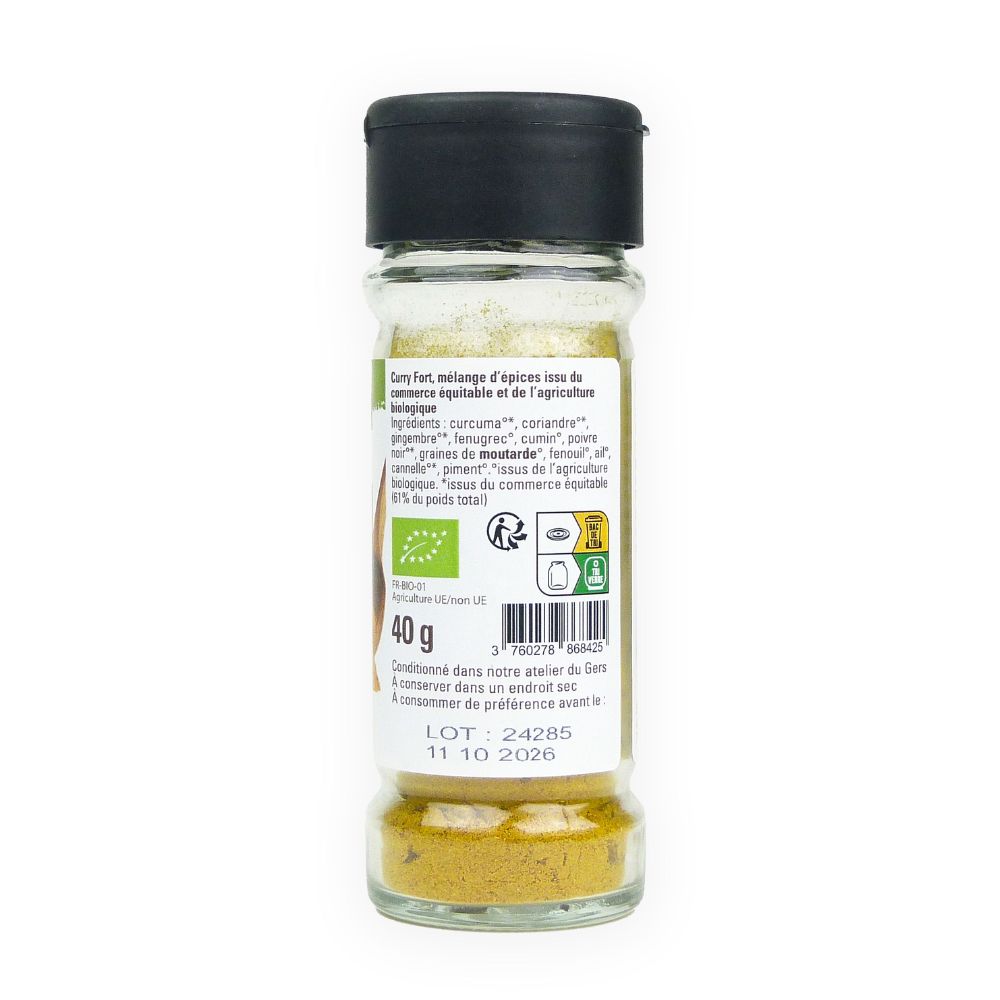 trasera del frasco de curry fuerte BIO de Comercio Justo