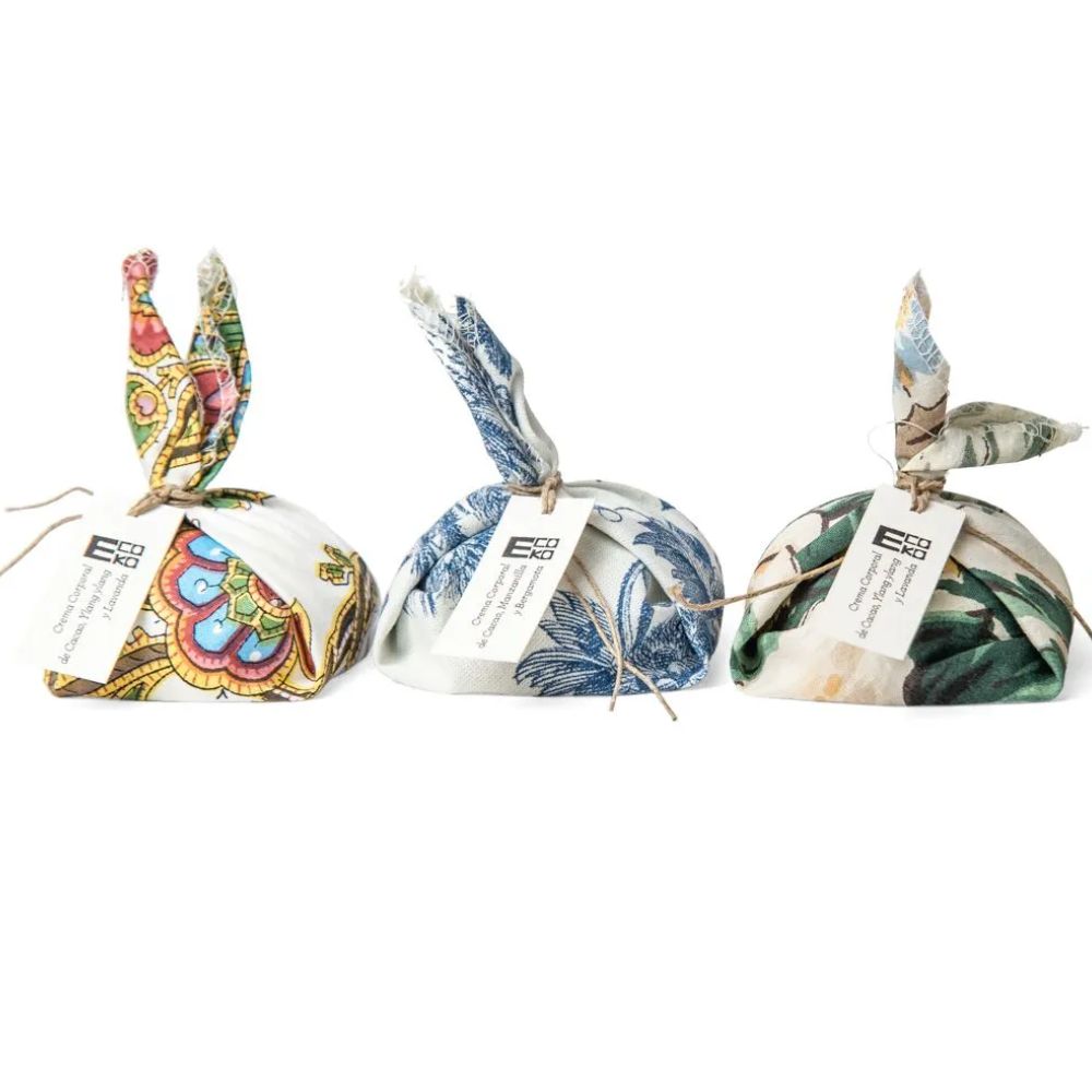 Packaging sostenible: el envoltorio es de tela, cada uno es único. Zero Waste.